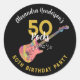 50 Rocks Pink Guitar 50th Birthday Party Gold Classic Round Sticker