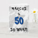 50 so what Funny Quote and Name Blue 50th Birthday Card