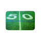 You can almost feel the turf under your feet when you step onto this bath mat. Designed from a photo of a football field at the 50 yard line in bright green and white. Bring the stadium home all year round. For football fans of all ages.