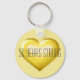 This keychain features a shapely gold heart with a glass-like appearance overlaid by the template text "50 Years Strong."