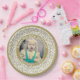 50 Your Photo Random Number Pattern Gold/White Paper Plate