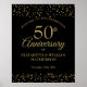 Elegant 50th-anniversary black with gold dust confetti welcome sign, Personalise with your special fifty years golden wedding anniversary details in chic gold typography. Designed by Thisisnotme©