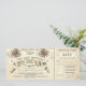 wedding anniversary invitations - boarding pass tickets with vintage beach theme, old plane, palm trees composition and beautiful typographic fonts design.