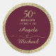 50th Anniversary Burgundy Gold Glitter Script Classic Round Sticker