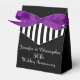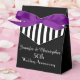 What a wonderful, personalised Party Favour Box for a 50th Wedding Anniversary or other special occasion. This Favour Box is decorated with a pattern of black and white stripes on a black background. On the front, Names and Event in white. A purple ribbon completes the festive look. A modern, elegant, and chic Wedding Anniversary Favour Box. All Rights Reserved © 2015 Alan & Marcia Socolik.