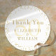 50th-anniversary gold dust confetti thank you, classic round sticker. Personalise with your names in chic gold lettering. Perfect for envelope seals or favour stickers. Designed by Thisisnotme©