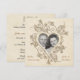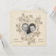 An elegant photo invitation with gold hearts and flourishes on tan textured-look background. The back has gold heart and flourish accent on the same background. This invitation is shown as a 50th anniversary event, but can be customised for any occasion and comes complete with white envelopes and choice of paper. Invitation prints flat and does not contain any raised embellishments.