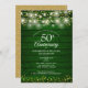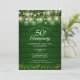 Featuring pretty string lights and delicate golden love hearts on an emerald green rustic wood background. Personalise with your special fifty years golden wedding anniversary information in chic gold lettering. Designed by Thisisnotme©