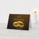Pretty gold script 50th anniversary with golden brown and dark black background with subtle swirling lines and two interlocking wedding band rings. An elegant and rich celebration of 50 years of wedding and wedded bliss. All Designs Copyright © 2012 www.CuteComfy.com