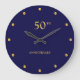 50TH Anniversary & Golden Dots on Navy Blue Large Clock