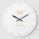 Chic 50th Anniversary, gold metallic look dots on white background wall clock. Text can be personalised.