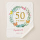 This elegant Keepsake Sherpa Blanket for 50th wedding anniversary party features a delicate floral greenery wreath made of wild flowers, plants, and butterflies. Blanket can be easily personalized with your special golden anniversary information. If you need help in personalization of the text, don't hesitate to contact me via Zazzle, please. Matching party supplies and stationery are available in "50th Wedding Anniversary Invitation and Supplies" collection.