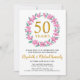Matching party supplies and stationery are available in "50th Wedding Anniversary Pink Flowers Wreath Cards and Party Supplies" collection.