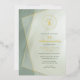 This modern geometric frame 50th wedding anniversary party invitation is simply designed with a greyed jade colour theme, an asymmetric geometric frame accent and select custom text in real gold foil, and a muted green / grey marble texture appearance - customise the text elements for any anniversary or birthday celebration - by katz_d_zynes