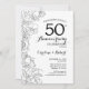 Black White Floral 50th Wedding Anniversary Party Invitation. Minimalist modern design featuring botanical outline drawings accents and typography script font. Elegant invite card perfect for a stylish celebration. Can be customised to any year of marriage. Printed Zazzle invitations or instant download digital printable template.