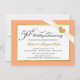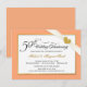 Create your own personalised 50th Wedding Anniversary Party Invitations -- Beautiful coral-peach border with [printed] white ribbon and golden gemstone bling heart. Classic engraved-look typography with fancy vintage style swash script lettering -- Elegant, affordable luxury, and uniquely customised for you! Just add the names, date, and details for your special milestone anniversary celebration. **NOTE: All elements of this design are part of the PRINTED image -- the ribbon, jewelled brooch, and frame are NOT raised, embossed, or presented as real embellishments. Sized for small invitation cards. Click "Customise It" to change the size, paper options, or font choices. Other sizes and styles available in gallery. © Teri Francis. Coordinating sets with matching postage and thank you cards available upon request.