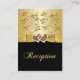 This elegant black and gold floral reception enclosure card has a PRINTED gold metallic look ribbon and bow with a pair of PRINTED glitter and diamond jewelled joined hearts on it that matches the 50th wedding anniversary invitation shown below. All the text is customisable, and so are the paper choices. If there are any other matching items you require, please email your request to niteowlstudio@gmail.com.