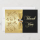 This elegant black and gold floral thank you card has a PRINTED gold metallic look ribbon and bow with a pair of PRINTED glitter and diamond jewelled joined hearts on it that matches the 50th wedding anniversary invitation shown below. All the text is customisable, and so are the paper choices. ALSO, if you change fonts or font sizes, your text may not fit properly anymore. Zazzle will not edit anything for typos, mis-alignment, or anything else, and I will not see your invitation. Everything will print as it appears on your monitor. If you need help with the invitation, please contact me BEFORE you order it. This invitation is designed to fit the 5x7 size card. If you change to another size, the design will no longer fit properly, so if you want a different size, please contact me so I can re-design it for you. If you require any other matching items in this design, please email your request to niteowlstudio@gmail.com.