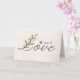 LOVE text in an elegant script font with green leaves on soft neutral texture background for 50th anniversary congratulations
