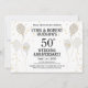50th Anniversary Party Elegant Gold Invitation. Celebrate a special couple's 50th Wedding Anniversary with this Elegant Gold Party Invitation. Designed for a Fiftieth Anniversary, this card is decorated with white and gold balloons on a white background, with black text, and gold coloured confetti. The reverse side is a gold coloured background with white balloons. To personalise, simply replace the sample name and event information using our easy template. Be sure to view the matching Party Banner.