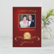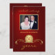 Personalised 50th Anniversary Party Invitations -- Elegant vintage gold accents on bold Royal Ruby Red background with photo frame and classic antique monogram. Add your own photo and customise the name, date, and details for the happy occasion. Perfect for both contemporary or vintage photos. Easily change the text and numbers for other milestone celebrations, 40th, 45th, 60th, 65th, etc. Matching envelopes, postage and thank you cards available. **NOTE: Sized for 5x7 invitation cards. Other sizes and styles available in gallery.