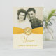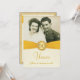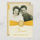 Personalised Wedding Anniversary Party Invitations -- fully customisable faux pocket photo invitations with antique damask background and elegant Monogram button on gold ribbon over ivory parchment. Add your own photo and customise the names, dates, and details for the special occasion. Perfect for both contemporary or vintage wedding photo. Matching envelopes, postage and thank you cards available. **NOTE: Sized for 5x7 invitation cards.