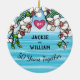 Did you get married, honeymoon, or live at the beach or on an island? Celebrate your 50th wedding anniversary with this personalised ornament! Beautiful blue ocean waves stretch to the clear sky horizon behind a floral frame of tropical white orchids and palm leaves. The happy couple's names, wedding year and 50 Years Together make this a one-of-a-kind gift for lovers of the sea.
