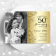 50th Anniversary With Photo - Gold Black Floral Invitation. Modern design featuring botanical outline drawings accents and typography script font. Simple trendy invite card perfect for a stylish golden fifty wedding anniversary celebration. Can be customised to reflect any years of marriage. Printed Zazzle invitations or instant download digital printable template.