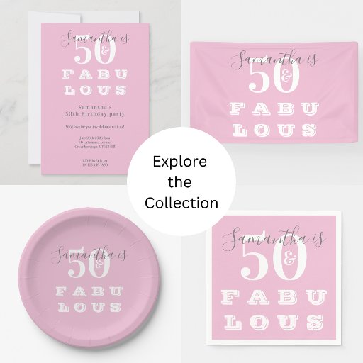 50th Birthday 50 fabulous Pink Grey Birthday Party Banner