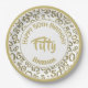 50th Birthday Age Number Pattern Gold/White 50 Paper Plate