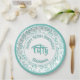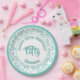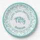 50th Birthday Age Number Pattern Teal/White 50 Paper Plate