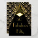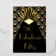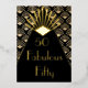Join us for a Roaring Time with this elegant and fun Art Deco Fabulous Fifty Birthday Invitation. This design perfectly captures the glamour of the 1920s and the Great Gatsby era. Featuring a bold geometric fan pattern in elegant black. It's the perfect choice for a sophisticated and memorable flapper-themed or Roaring Twenties 50th celebration, luncheon, or engagement party. The vintage Art Nouveau and Art Deco style is a stylish twist on a traditional invite.