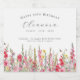 Perfect table decor for an August birthday party. Pink gladiolus is the birth flower for that month. It forms a pretty watercolor bottom border on this floral personalised wine bottle label. The birthday guest of honour's name, age and birthdate are placed above it using elegant calligraphy and typography. All text is editable.