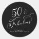 A pretty black sticker for your fiftieth birthday party invitations, correspondence and party favours. This elegant and chic design features "50 & Fabulous" written in a white calligraphy script. Customise with your name.