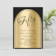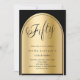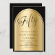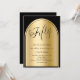 An elegant 50th birthday invitation. A black background with a golden arch on the front.