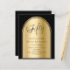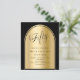 An elegant 50th birthday invitation. A black background with a golden arch on the front.