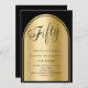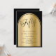 An elegant 50th birthday invitation. A black background with a golden arch on the front.