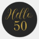 Elegant black and gold 50th birthday sticker design. This modern typography design is in chic black and gold. It has the text "Hello 50" in trending typography. This stylish design is perfect for an unforgettable 50th birthday party celebration. Contact the designer for help with matching products, personalization and customization.