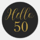 Elegant black and gold 50th birthday sticker design. This modern typography design is in chic black and gold. It has the text "Hello 50" in trending typography. This stylish design is perfect for an unforgettable 50th birthday party celebration. If you need help with personalisation, or for a custom design contact me via zazzle chat or email: ursuladawnmoon@gmail.com