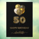 For a glamourous 50th birthday party. A black background, decorated with balloons. With the text: Happy Birthday. Personalise and add a name. The name is written in dark rose gold with a modern hand lettered style script with swashes. Number 50 is written with a trendy balloon style font, leopard pattern. To keep the swashes only delete the sample name, leave the spaces or emoji's in front and after the name.