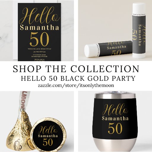 Black Gold Hello 50 Personalized 50th Birthday Designed by Only The Moon