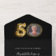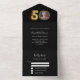 A black background, decorated with a large number 50 in faux gold. Personalise and add a photo, name, party details, RSVP date, return address and name.