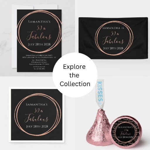 50 and Fabulous Birthday Party Black Rose GoldDesigned by Only The Moon