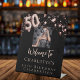 A welcome sign for a glamourous 50th birthday party. A classic black background decorated with rose gold stars. Personalise and add a photo and name. Number 50 is written with a balloon style font.