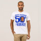Happy 50th Birthday blue text, custom photo, and name t-shirt. Fun 50th personalised photo blue and white birthday tee design. Personalise this birthday shirt with a photograph of the birthday boy or girl in the middle of the number 0. Great idea for adding some fun to a milestone fiftieth birthday party or event. Other matching items and colours are available. Exclusive design by Sarah Trett for www.mylittleeden.com