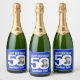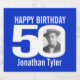 50th birthday white text on blue photo party paper sparkling wine or wine labels. Great to add a personal touch to a surprise fiftieth birthday party or to put on your party tables. Personalise with your birthday boys photo in the 0 of 50 and personalise with your choice of name. Other matching items are available. Designed by www.mylittleeden.com