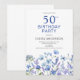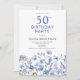 50th Birthday Blue Floral Botanical Invitation