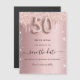A girly and trendy Save the Date card for a 50th birthday party. A blush pink gradient background decorated with rose gold and faux silver glitter drips,sparkles. Personalise and add a date and name/text. The text: Save the Date is written with a large trendy hand lettered style script with swashes. Number 50 with a balloon style font.