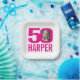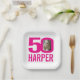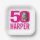 50th birthday bright pink white 50 custom photo paper plate
