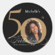 50th Birthday Calligraphy Gold Black Elegant Photo Classic Round Sticker